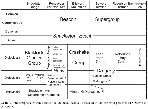 Antártico, el Ordovícico ha sido reconocido en localidades en el ámbito de